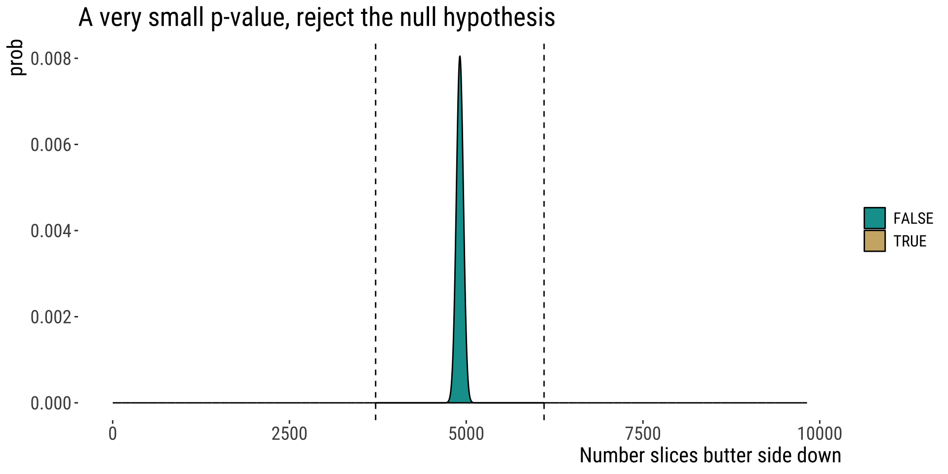 What is the probability that we would see a result this or more extreme if toast has a fifty-fifty chance of landing butter side down?