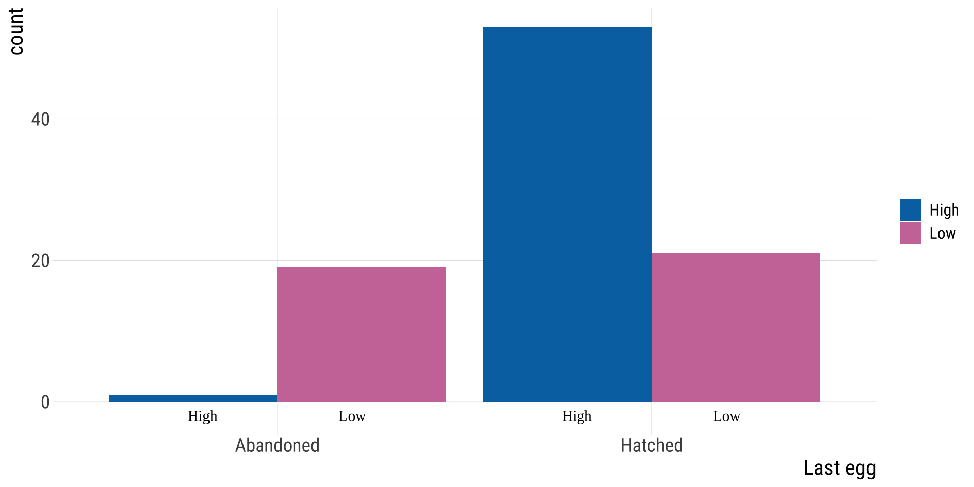 \(H_0\): There is NO association between habitat quality & the chance of abandoning the last egg