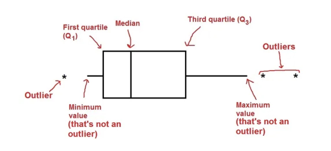 If there are outliers, whiskers go up to \(Q3+1.5IQR\) and down to \(Q1-1.5IQR\) and outliers are shown as circles