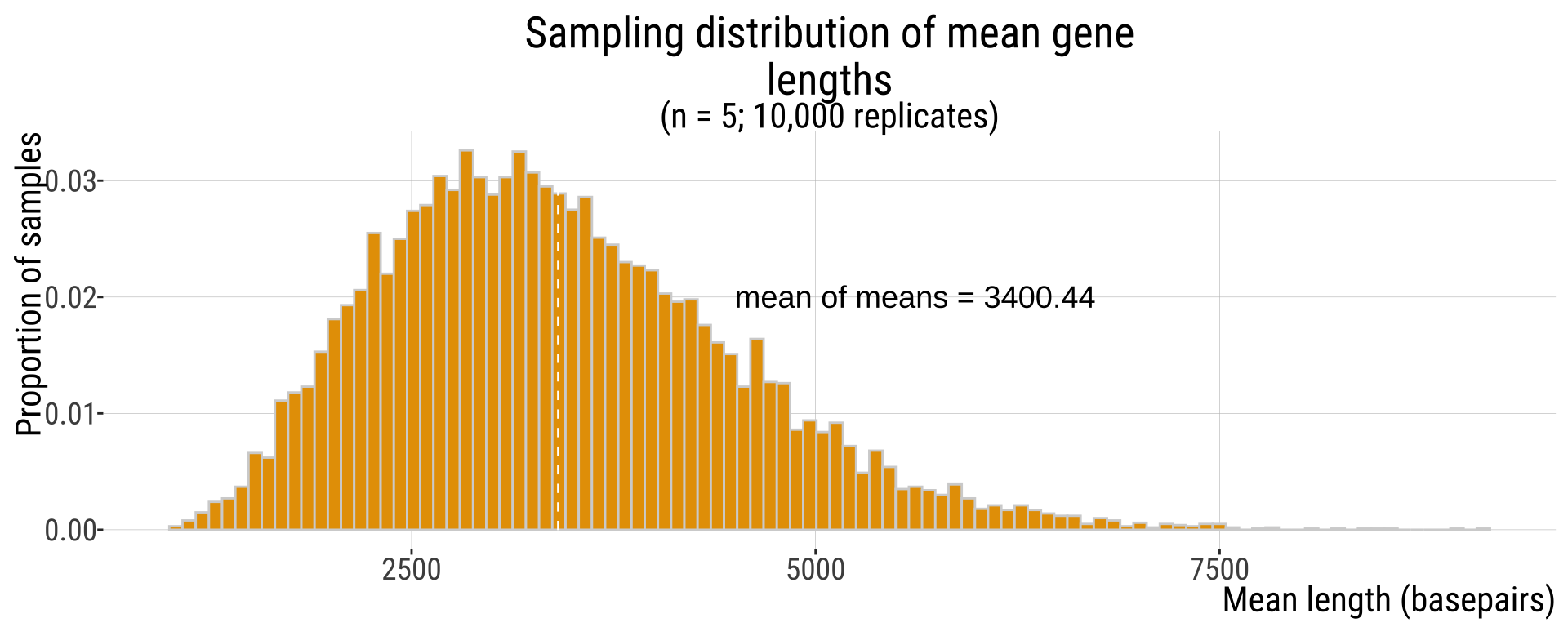 We can also estimate \(SEM_{\bar{Y}}\) by taking the standard deviaton of the sampling distribution of sample means of a given size.