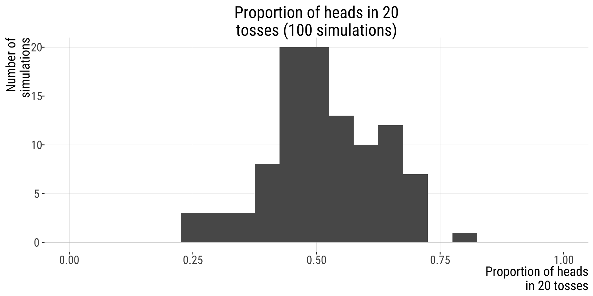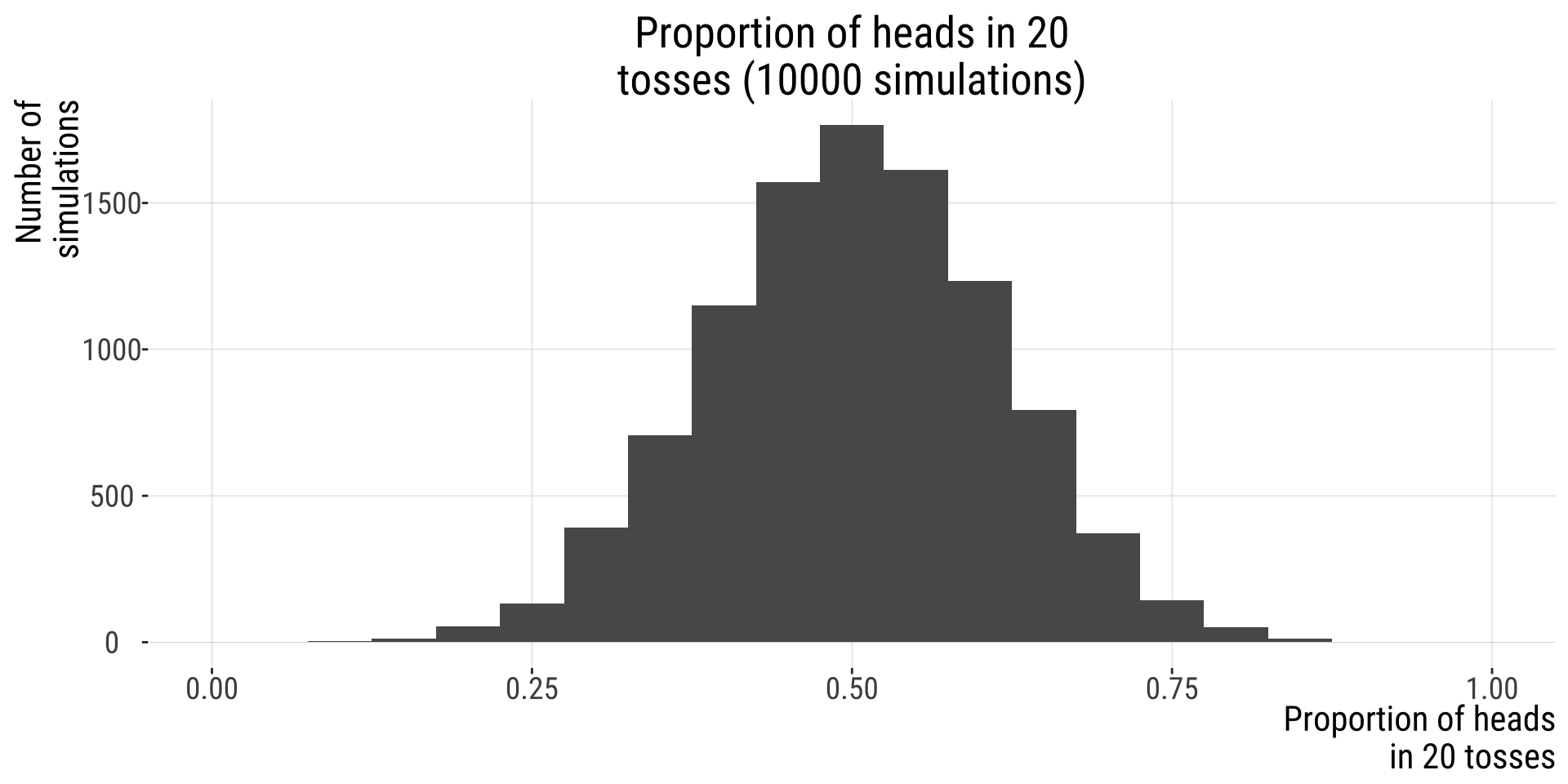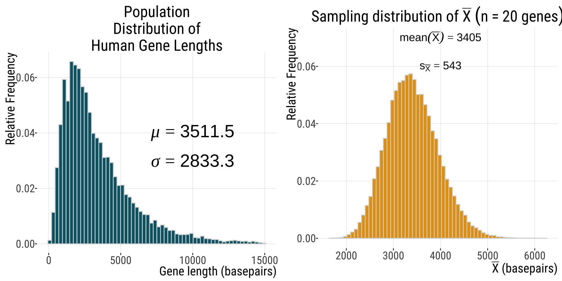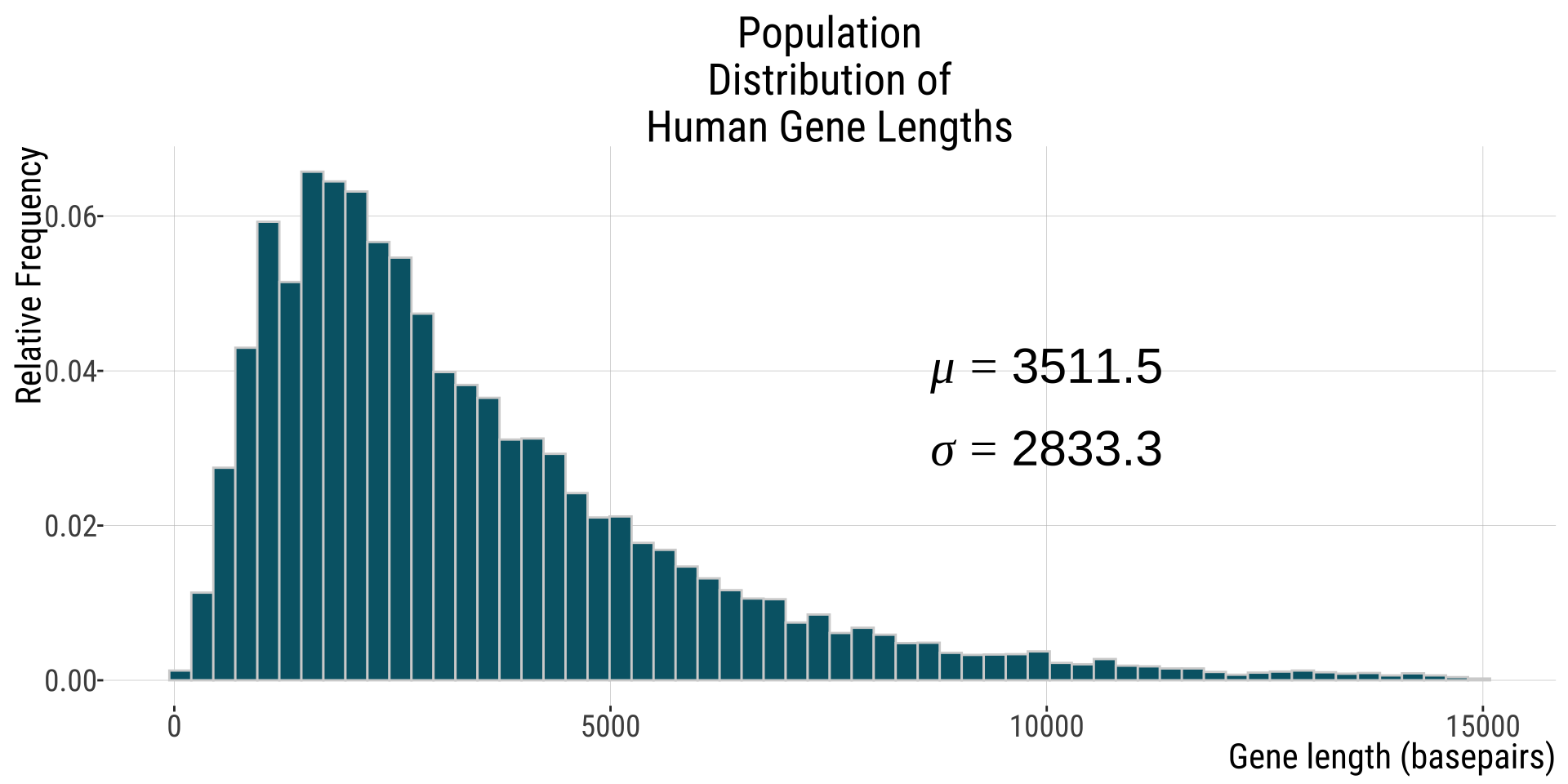 If instead of taking 3 independent samples of 20 genes we take, say, 100,000, we see a sampling distribution