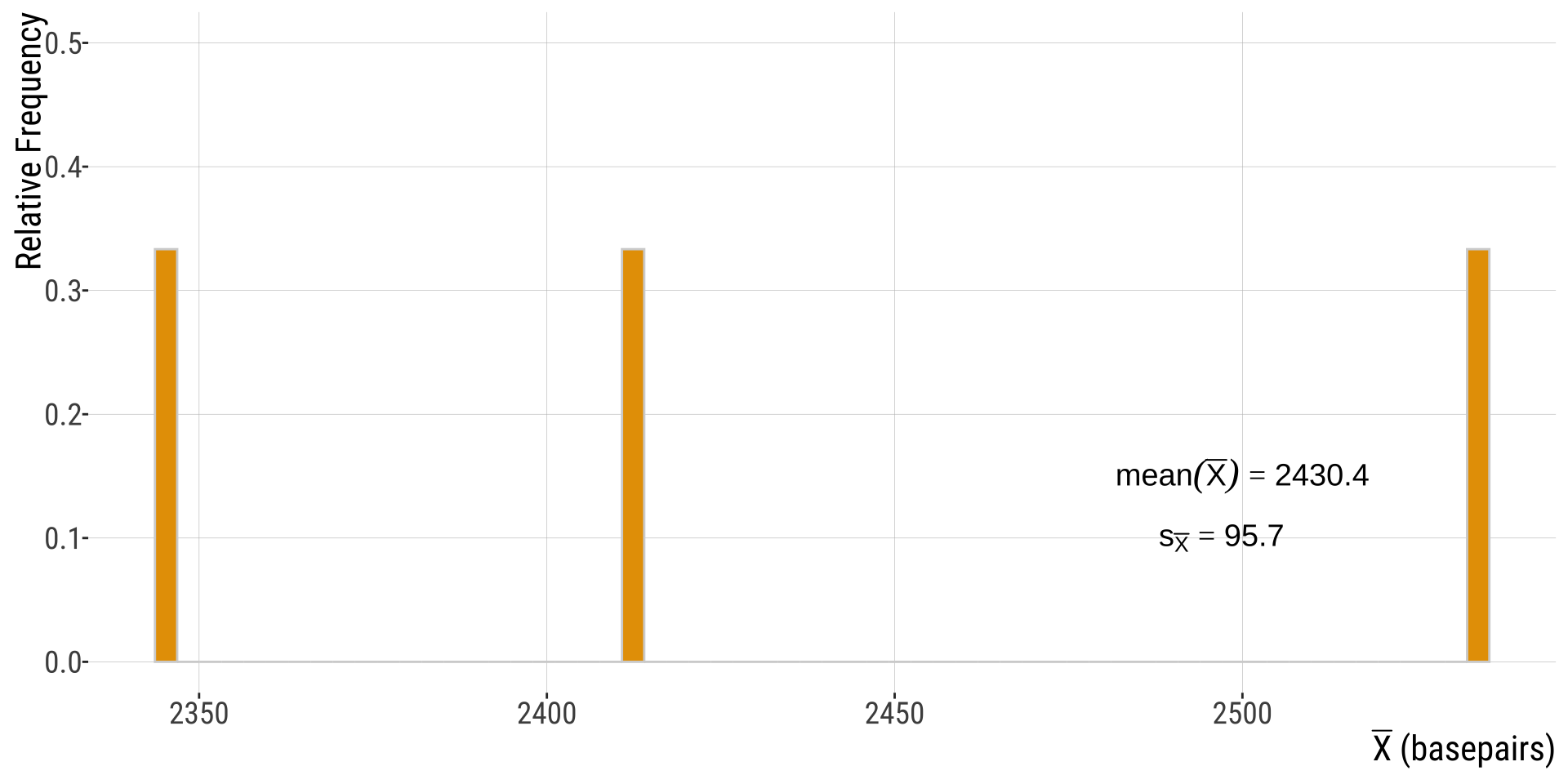 So we would report \(2533.9 \pm339.4 \text{ (SEM)}\). Later we will also see how the \(SEM\) is used in plots (error bars).