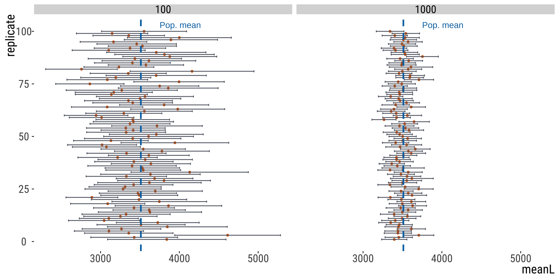 Another 100 replicates of n=5