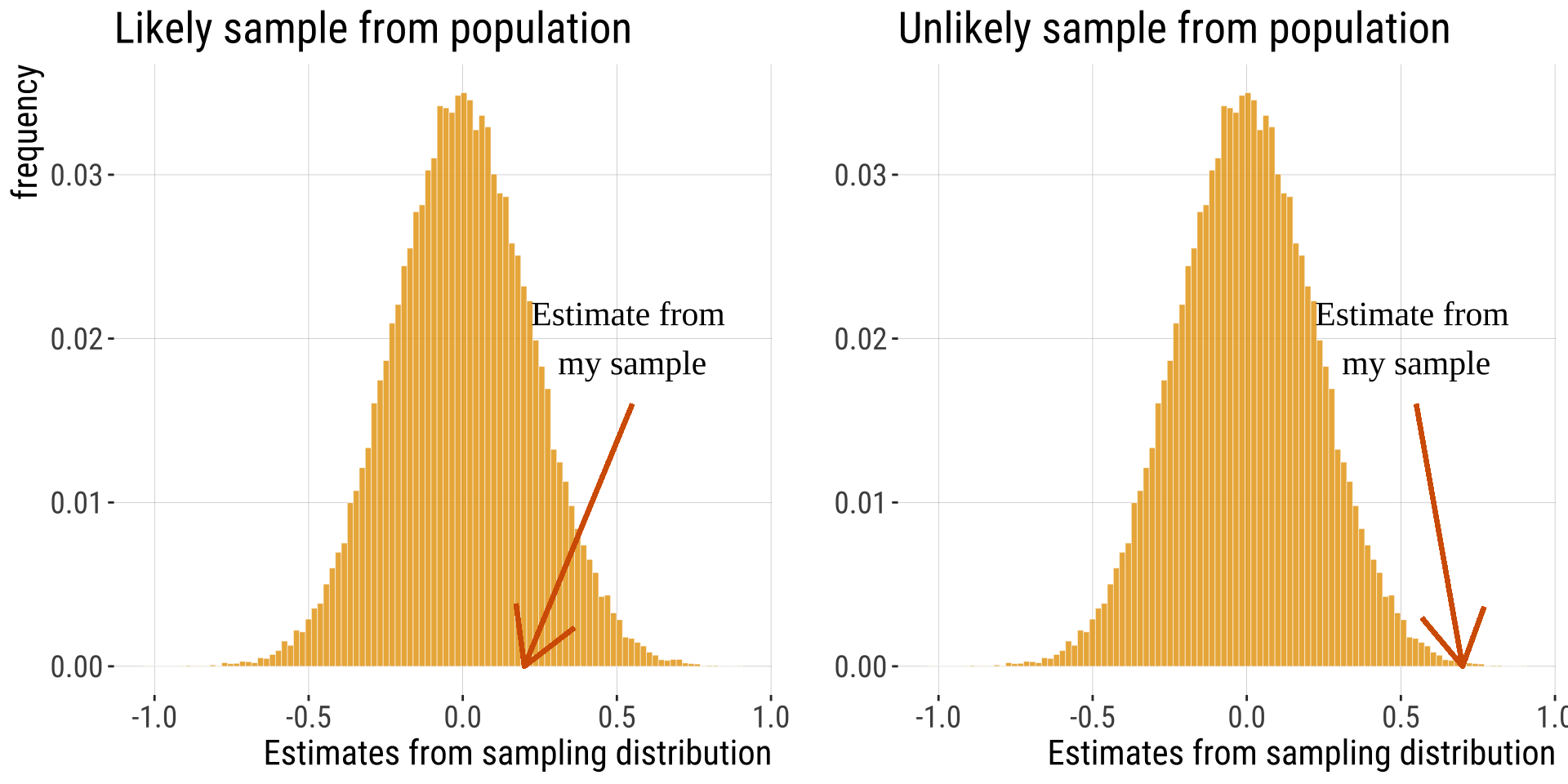 We conduct hypothesis testing by checking if our estimate is surprising (unlikely) under the null model.