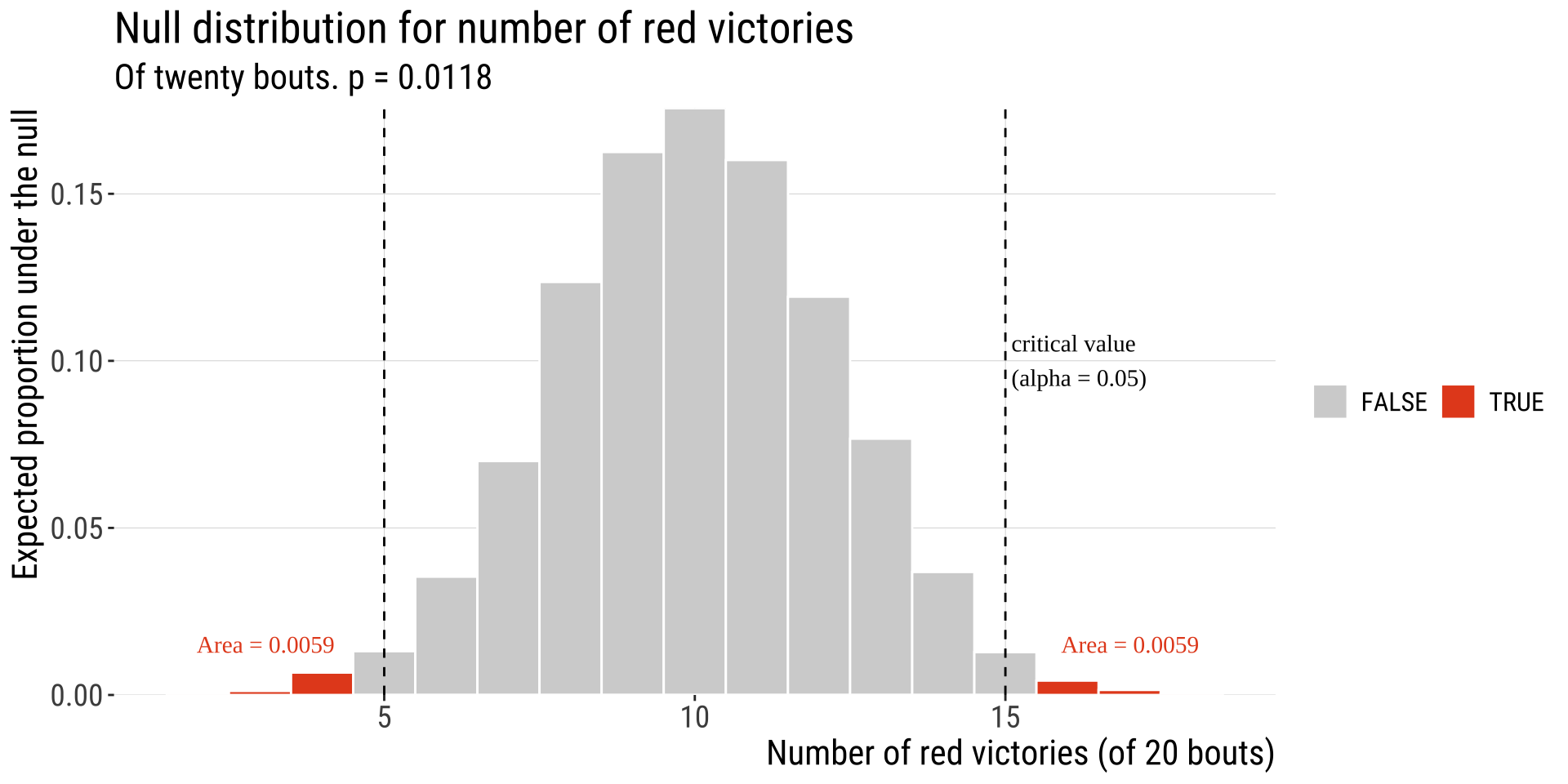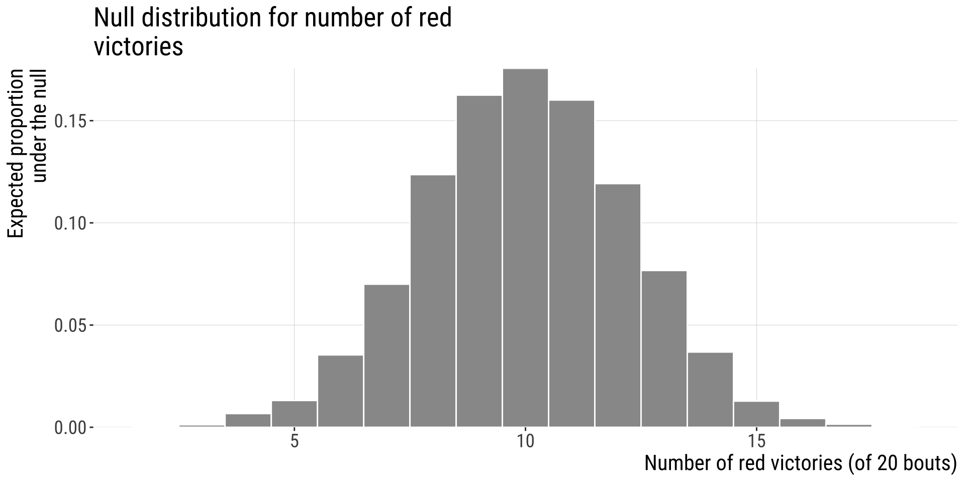 Our test statistic here the difference between our observation (16 of 20 wins) and our expectation (10 of twenty wins).