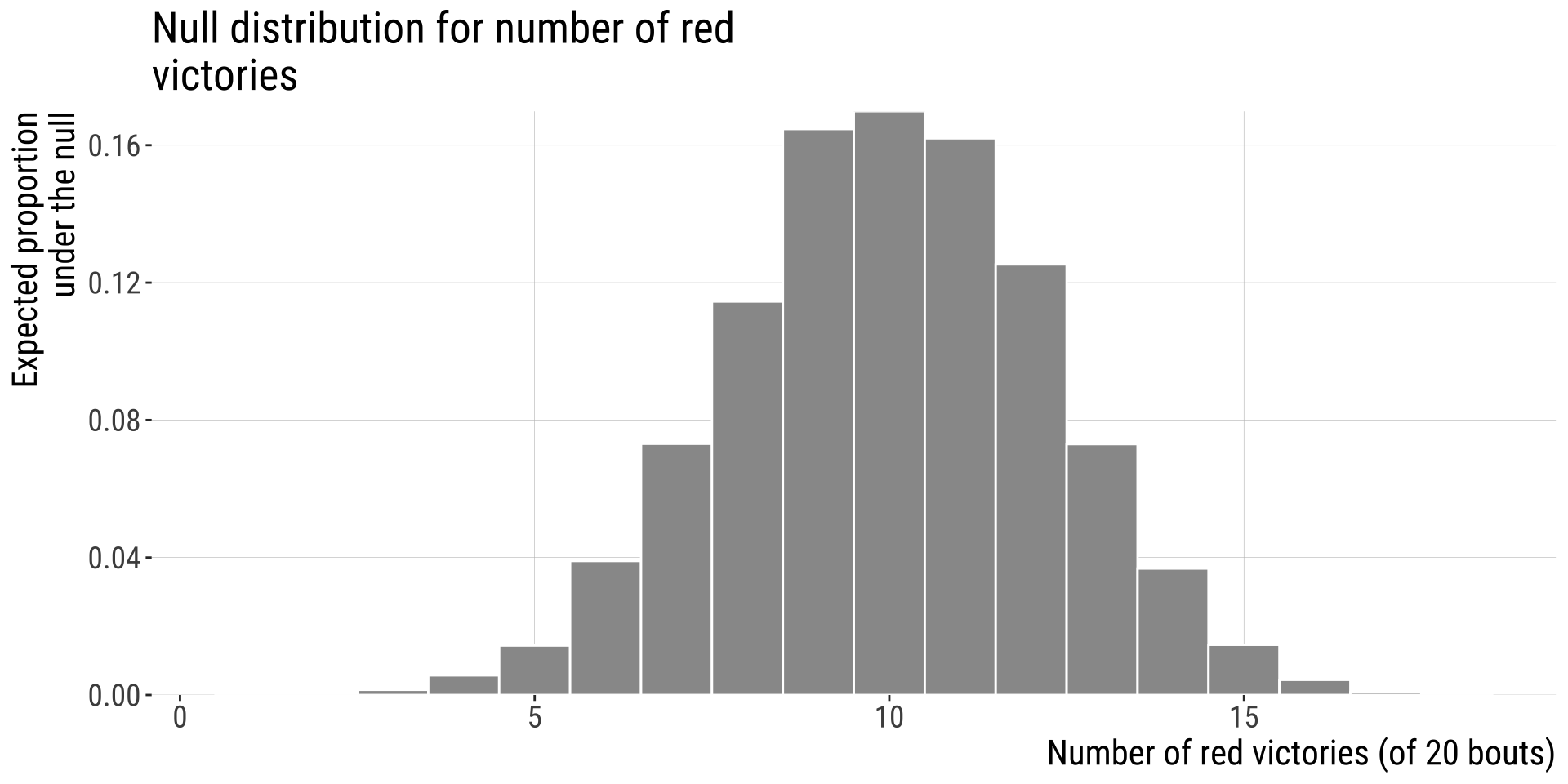 But we recognize that given many tries a pattern this extreme (or even more extreme) can occur without any dependence between victory and shorts color.