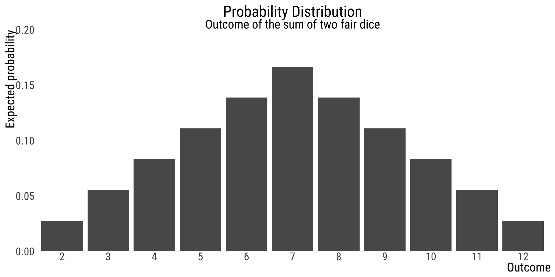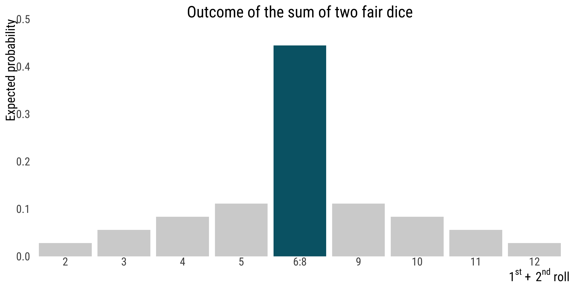 prob = c(1, 2, 3, 4, 5, 6, 5, 4, 3, 2, 1) / 36) |>