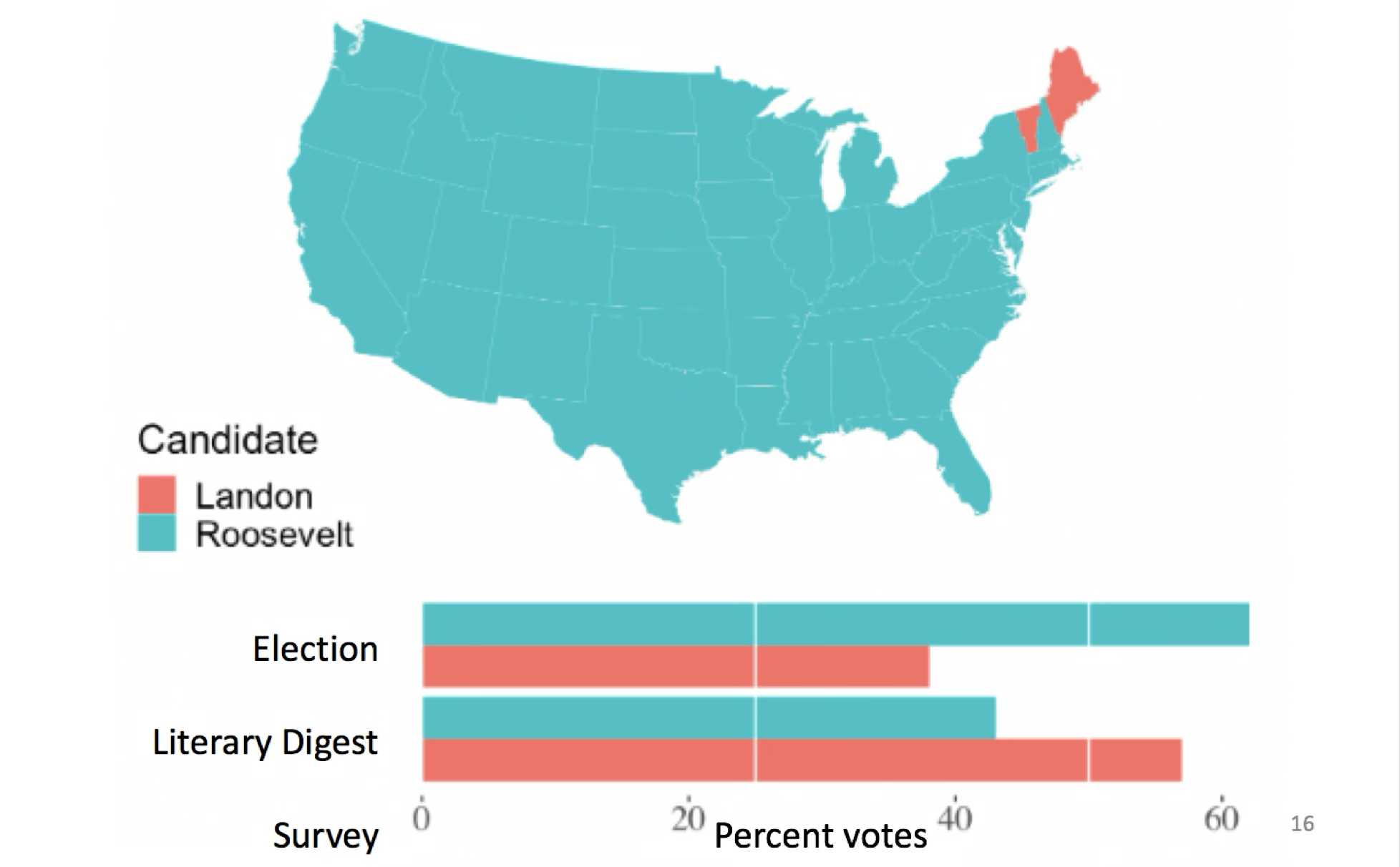 - Poorer people (underrepresented in the poll) supported Roosevelt, carrying him to victory.